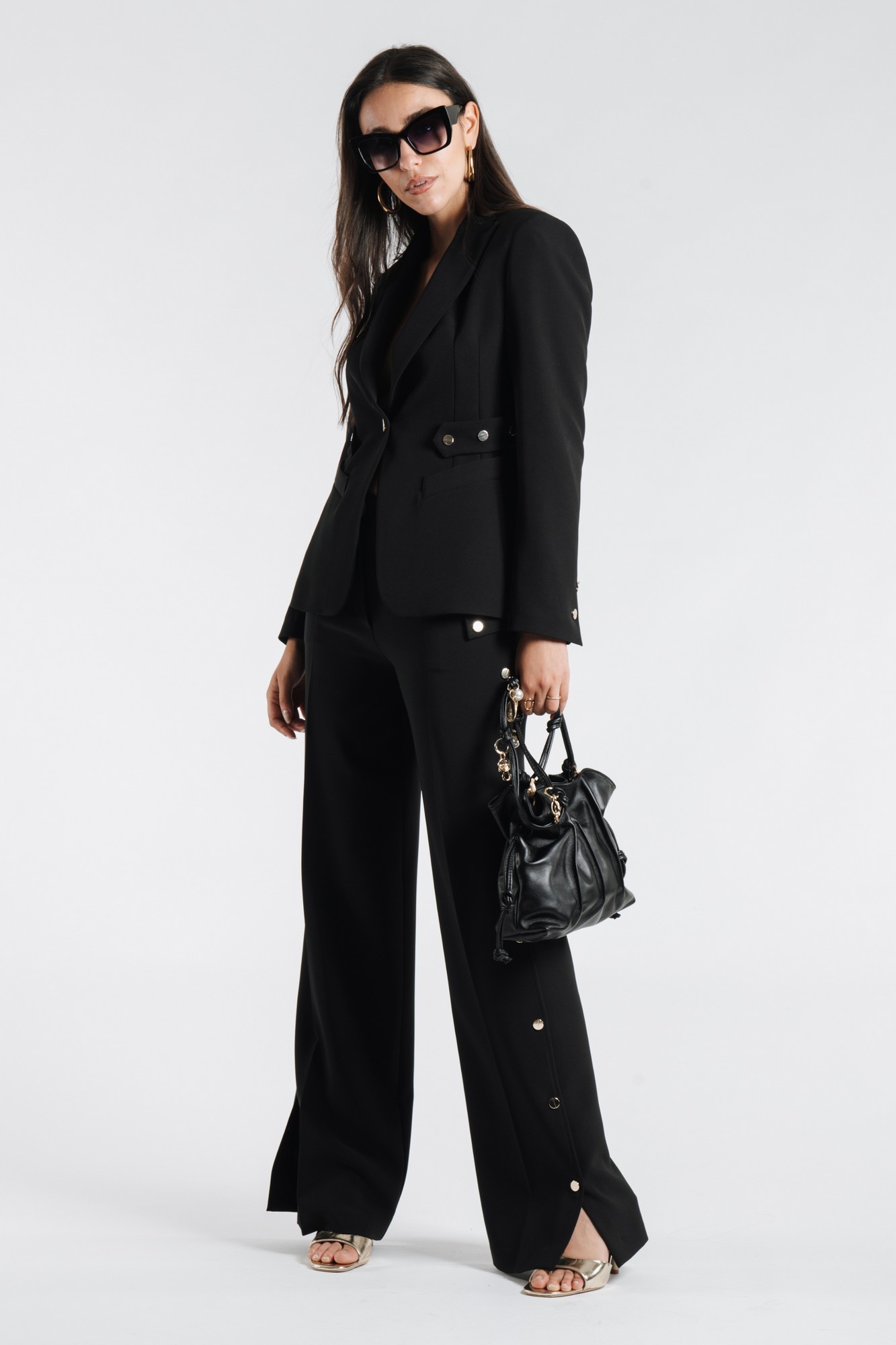 SINGLE-BREASTED BLAZER WITH GOLD METALLIC BUTTONS AND PEAKED LAPELS