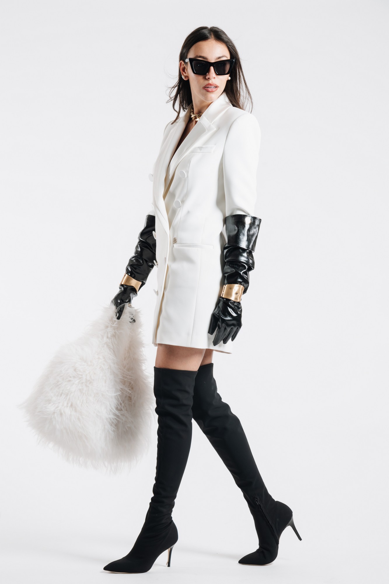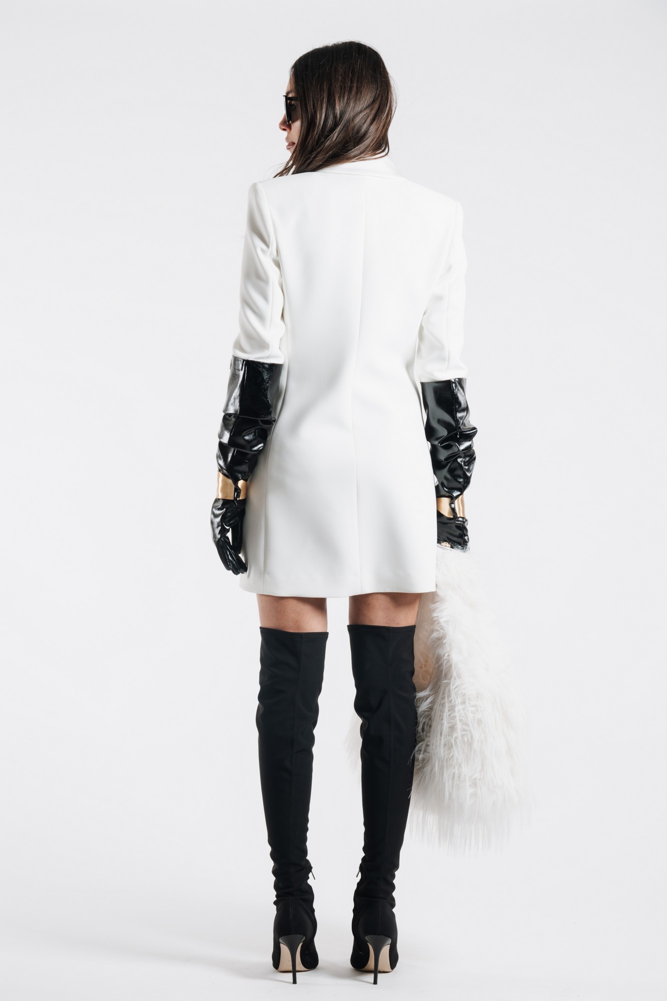 ELEGANT ROBE-MANTEAUX WITH PEAK LAPELS AND COVERED BUTTONS