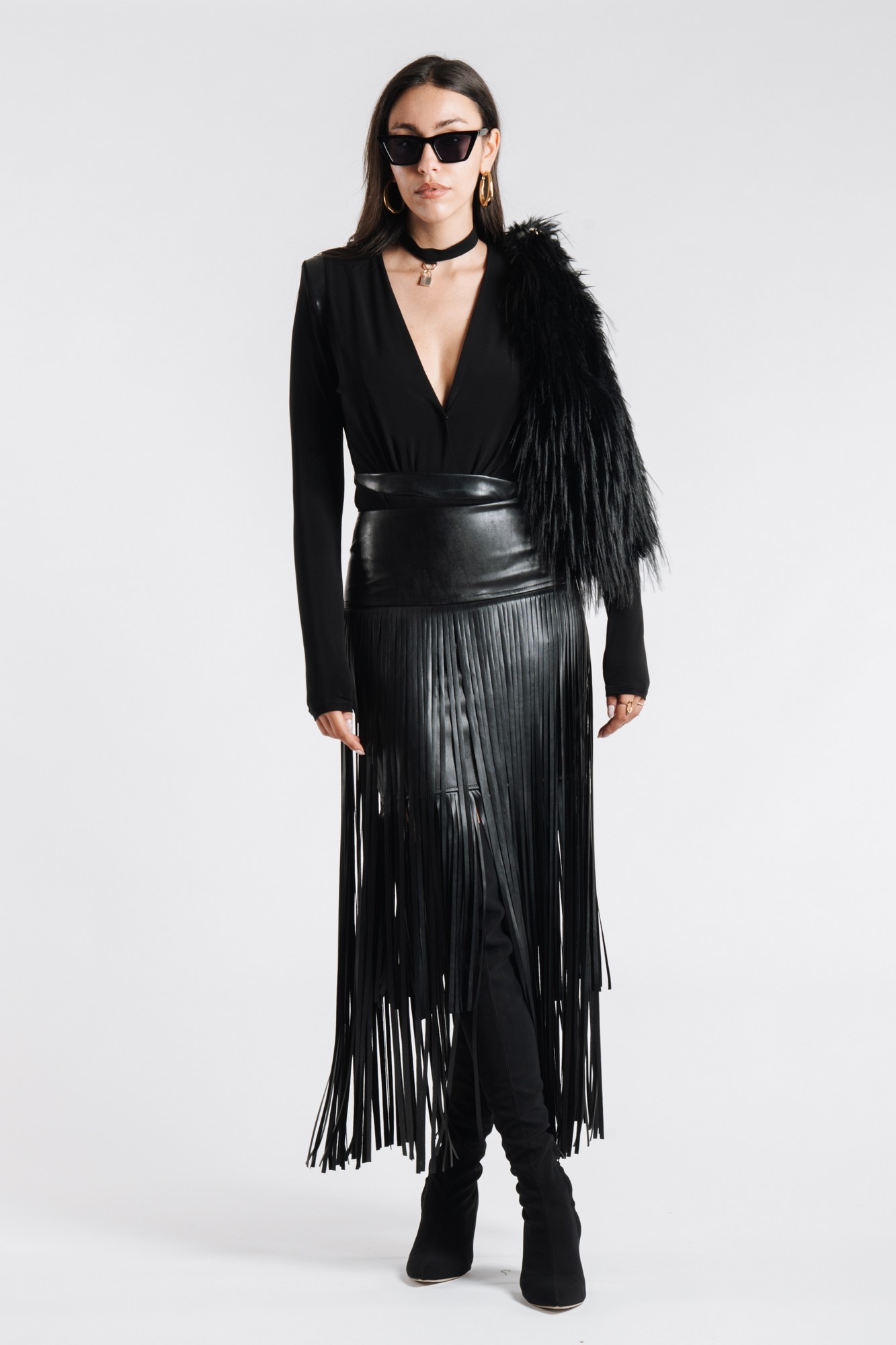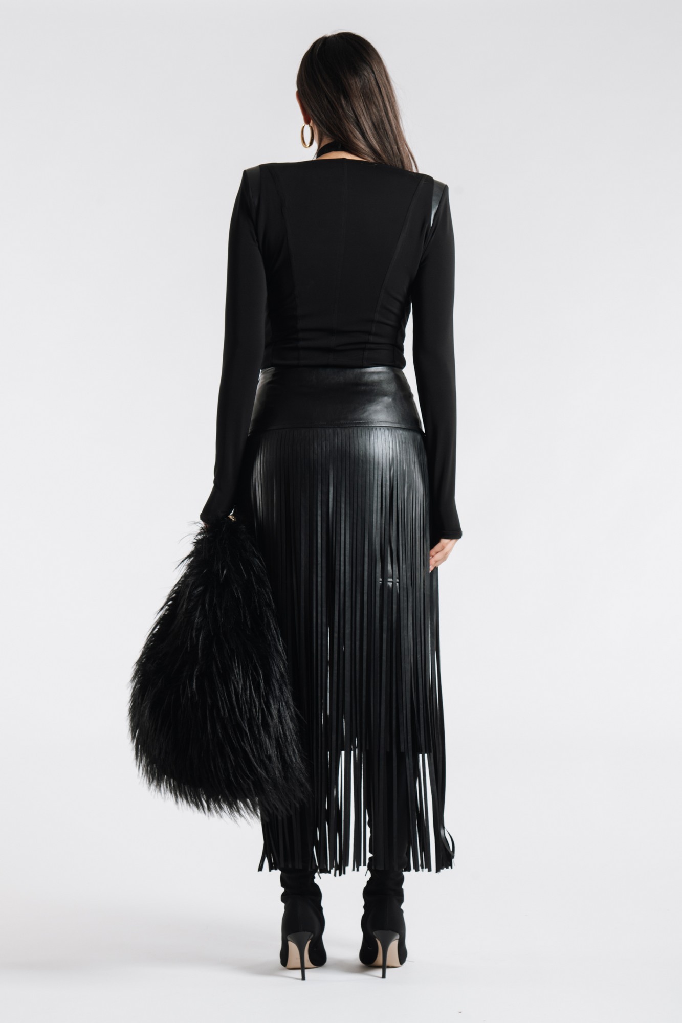 FAUX LEATHER SKIRT WITH FRINGES AND SIDE ZIP 100% POLYURETHANE MADE IN ITALY