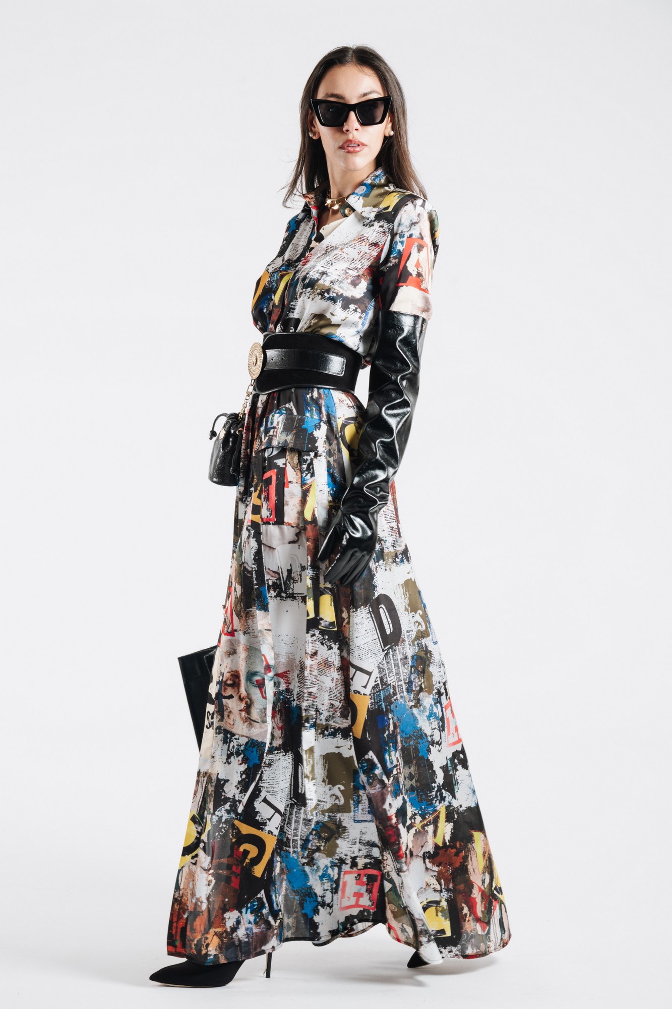 LONG CHEMISIER WITH PRINT AND GOLDEN METALLIC BUTTONS 100% POLYAMIDE MADE IN ITALY